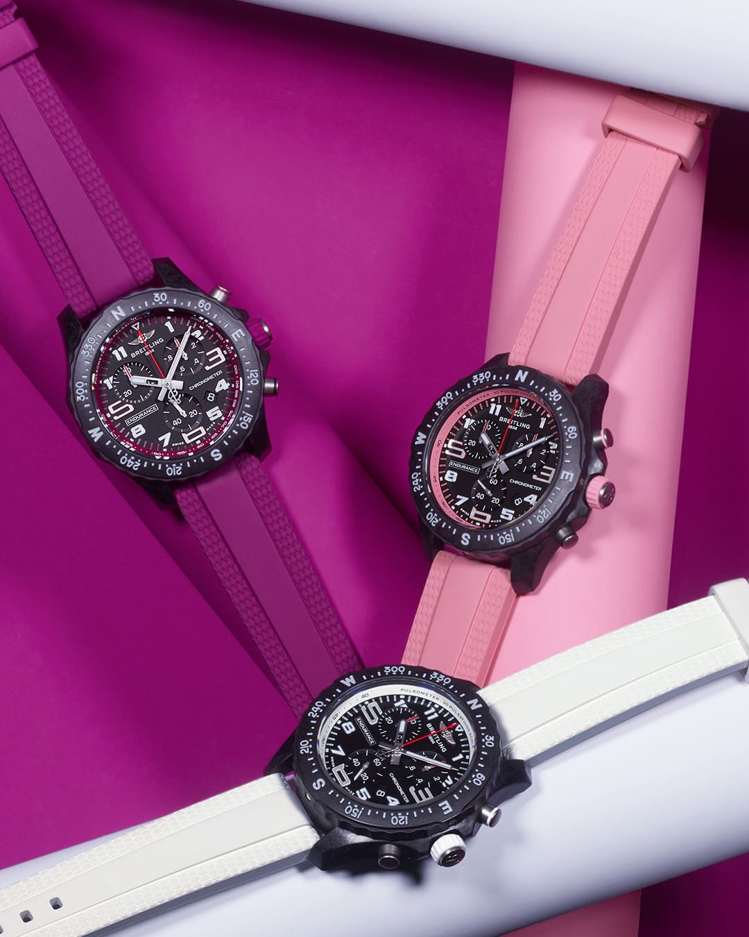 Die Endurance Pro ist in verschiedenen farbigen Ausführungen erhältlich, die Frische und Energie ausstrahlen. Unterschiedliche Kombinationen aus Zifferblatt und Kautschukarmband setzen lebendige Akzente – von klaren Blautönen bis hin zu warmen und ausdrucksstarken Nuancen. So entsteht ein Zeitmesser, der Bewegung sichtbar macht und sich zugleich mühelos in den Alltag einfügt.