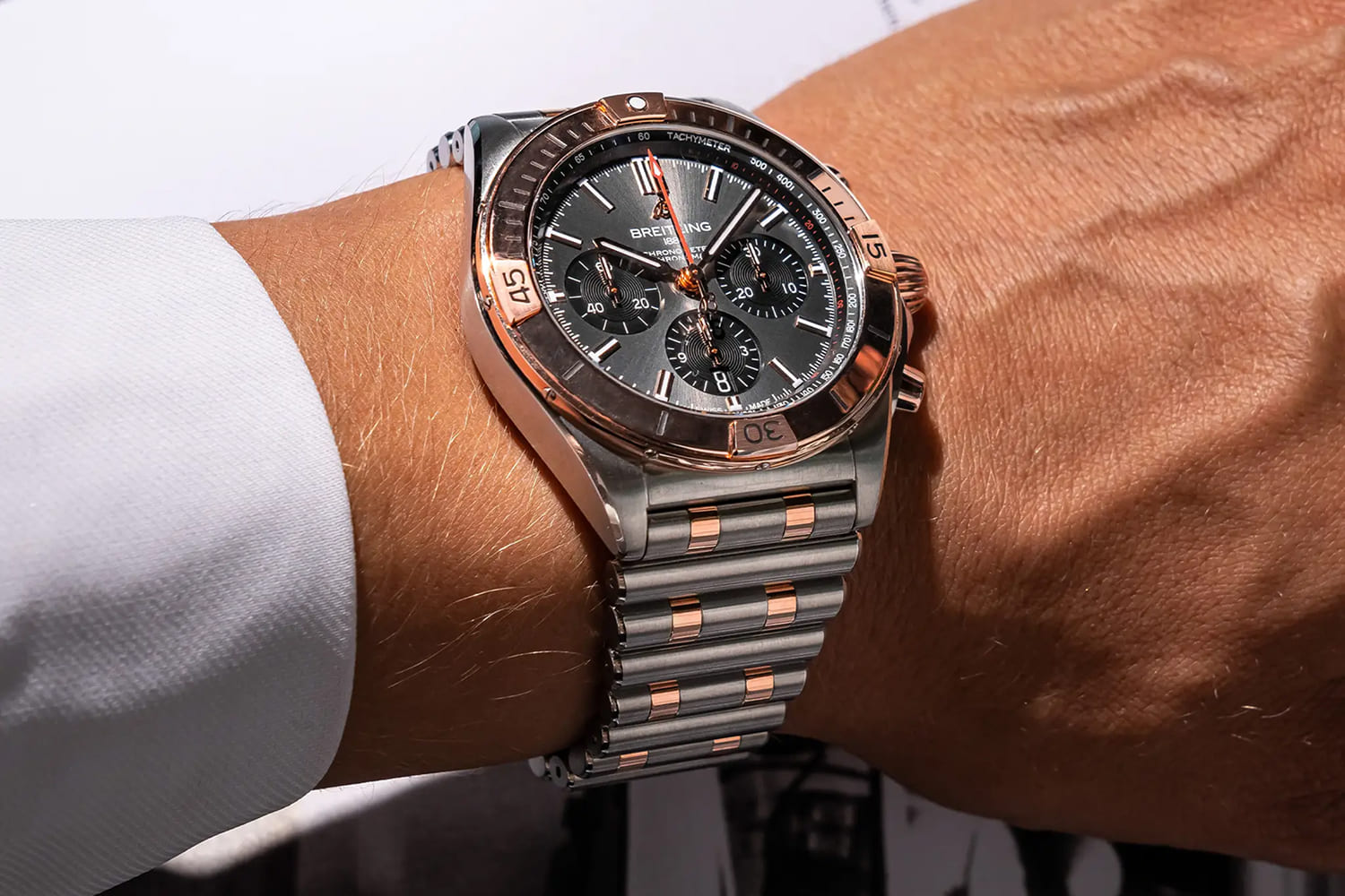 Perfekt für den Sonnenuntergang auf der Jacht oder einen Sundowner in der Metropole – erfahren Sie mehr über die Breitling Chronomat B01 42 aus Edelstahl und Rotgold.