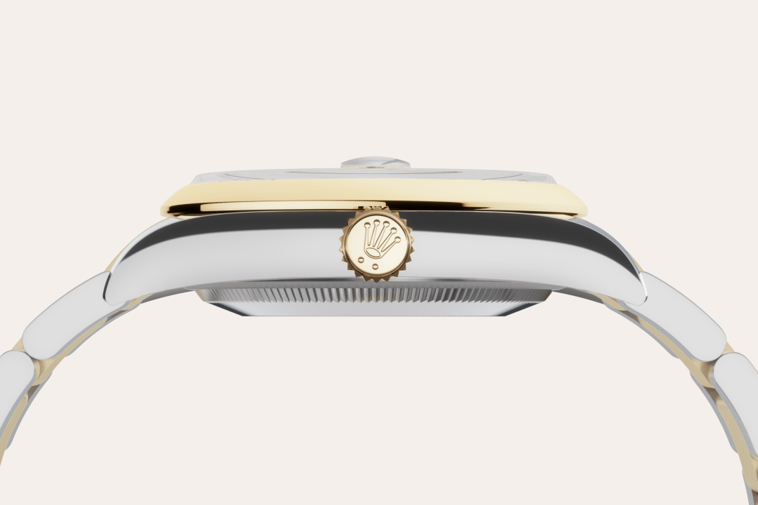 Gold wird aufgrund seines Glanzes und seiner Kostbarkeit geschätzt. Edelstahl steht für Stärke und Zuverlässigkeit. Zusammen kommen ihre besten Eigenschaften harmonisch zur Geltung. Rolesor, ein unverwechselbares Erkennungsmerkmal von Rolex, findet seit den frühen 1930er-Jahren bei Rolex Modellen Anwendung und wurde 1933 als Markenname eingetragen. Es ist bis heute einer der Grundpfeiler der Oyster Kollektion.