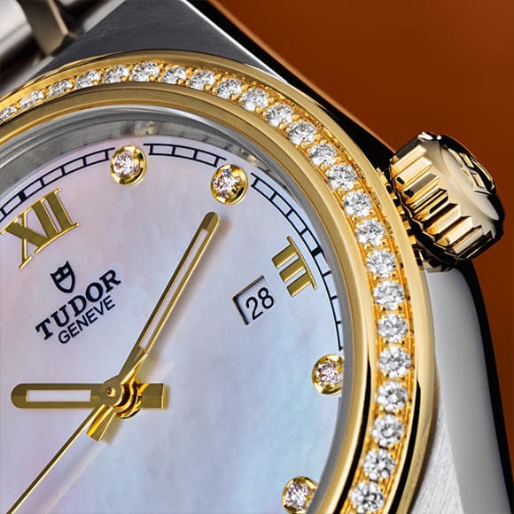 Die TUDOR Royal steht für ihr stilsicheres Design. Ein ganz besonderes Strahlen geht von den aktuellen Damenmodellen mit Diamantbesatz aus. Die brillantbesetzten Indizes – und bei ausgewählten Modellen auch die rundherum mit Diamanten besetzte Lünette – machen die Uhr zu einem kostbaren Juwel. Wählen Sie zwischen Modellen am Edelstahlarmband oder am Bicolor-Armband aus Gold und Edelstahl – hier ist auch die Lünette aus Gold gefertigt.